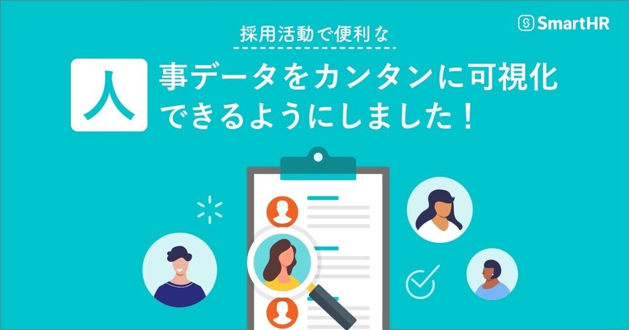 たとえば、SmartHR上で入退社管理をしていれば、人員数のレポートはあっという間に作れます。さらにデータのバリエーションを増やし、「円グラフ」「折れ線グラフ」といったビジュアルで可視化すると、人事施策のきっかけが見つかりやすくなります。