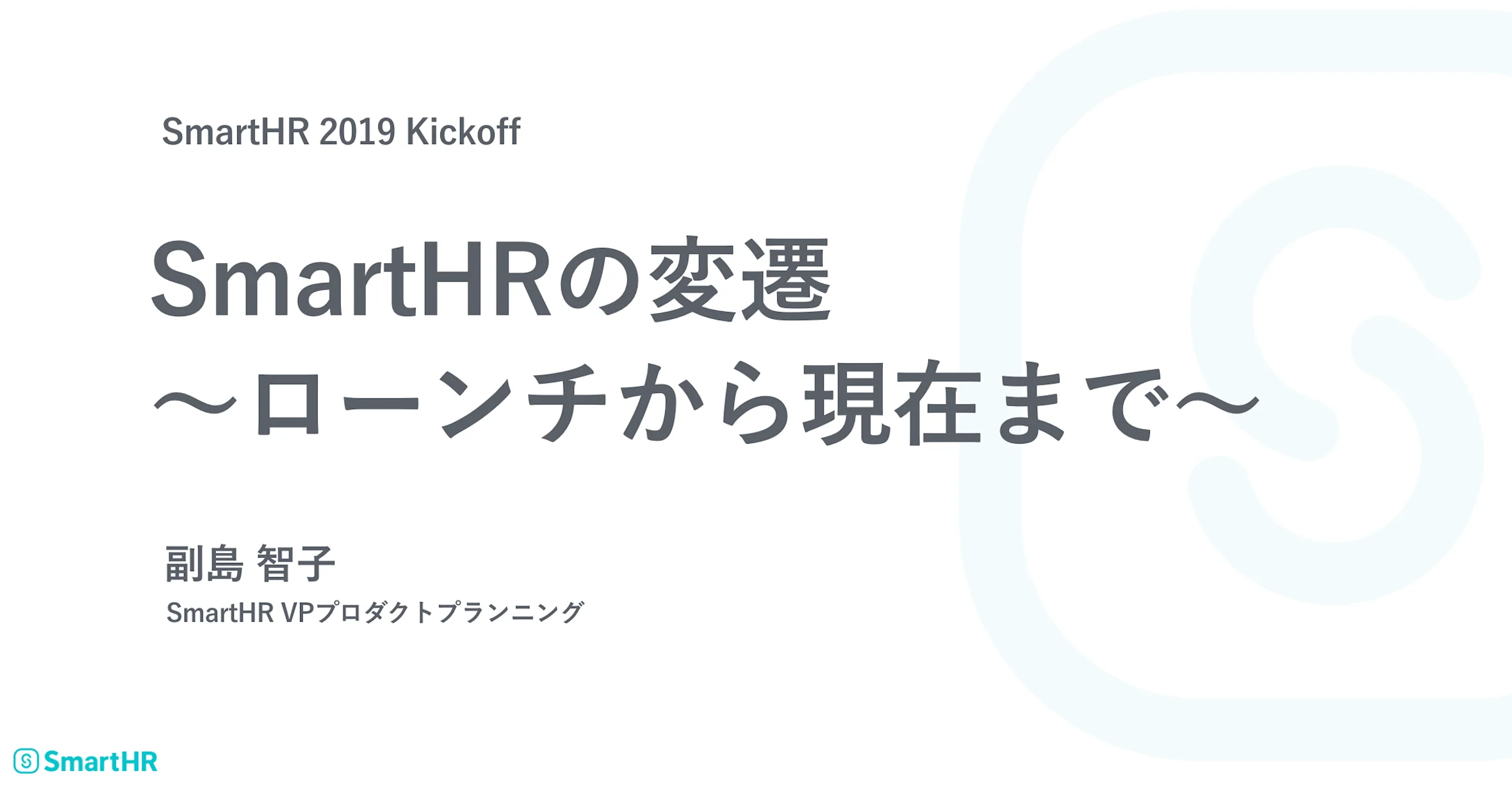 今回は、「SmartHRの変遷」と題しまして、過去から現在まで3年間をちょっと振り返ろうと思っております。よろしくお願いします。