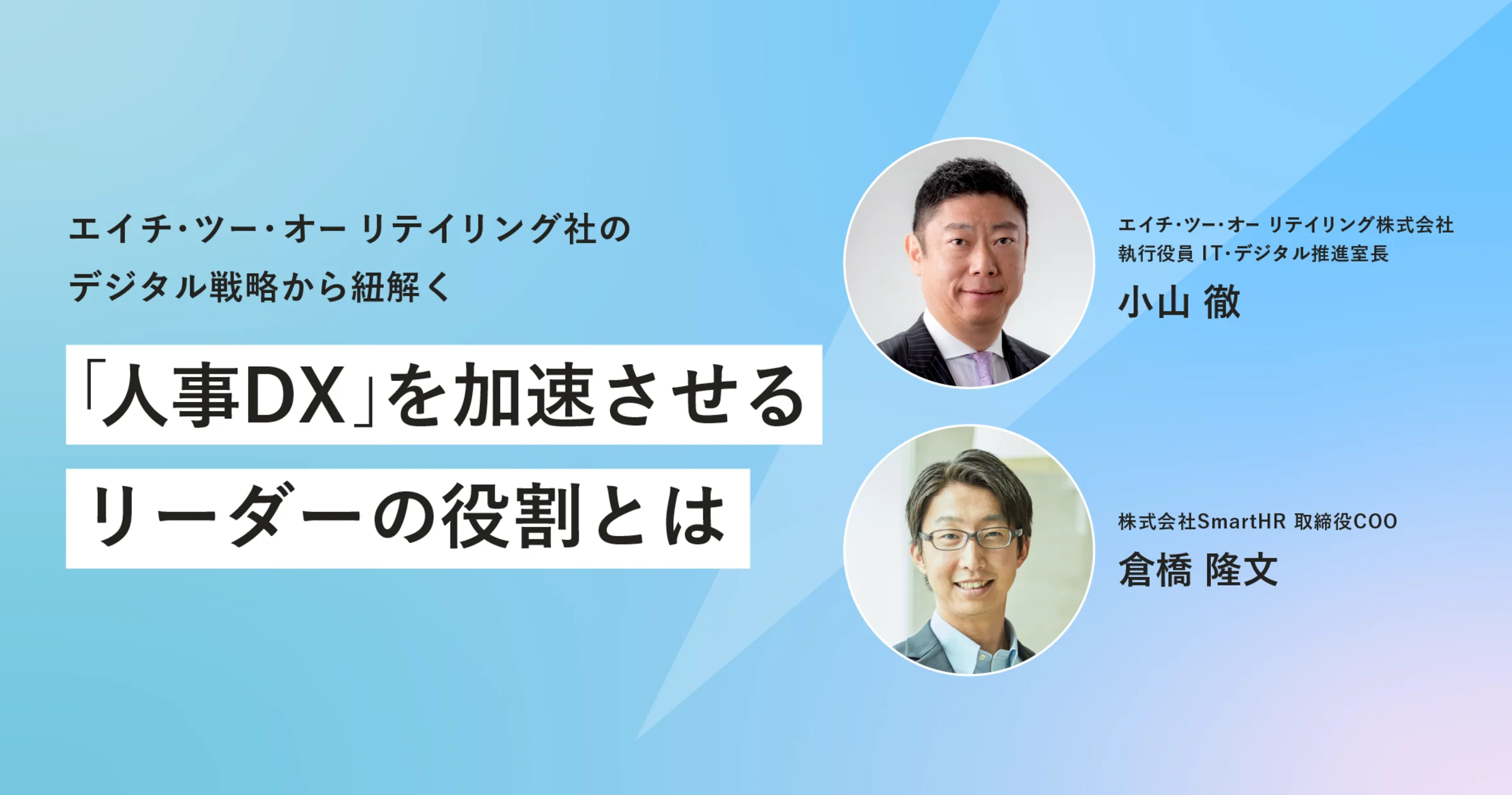 今回のスピーカーは、関西を中心に百貨店やスーパーを手がけるエイチ・ツー・オー リテイリング社の小山徹氏。第一部の講演に続き、第二部の対談では具体的な人事DXの進め方から関係者とのやり取りまで、さらに深く伺いました。
