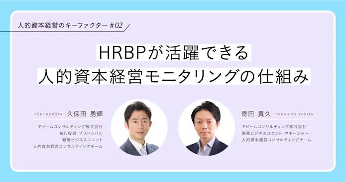 本連載では、人的資本経営を成功させるためのキーファクターを3回にわけて解説。第1回目は、人的資本経営の根幹である「事業と連動した人材マテリアリティ・KGI設定・人材戦略策定」を紹介しました。そして第2回目では、人的資本経営の進捗把握に不可欠な「HRBPが活躍できる人的資本経営モニタリングの仕組み」を解説。