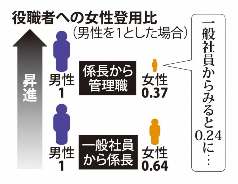 女性の昇進しやすさは、男性の4分の1の水準