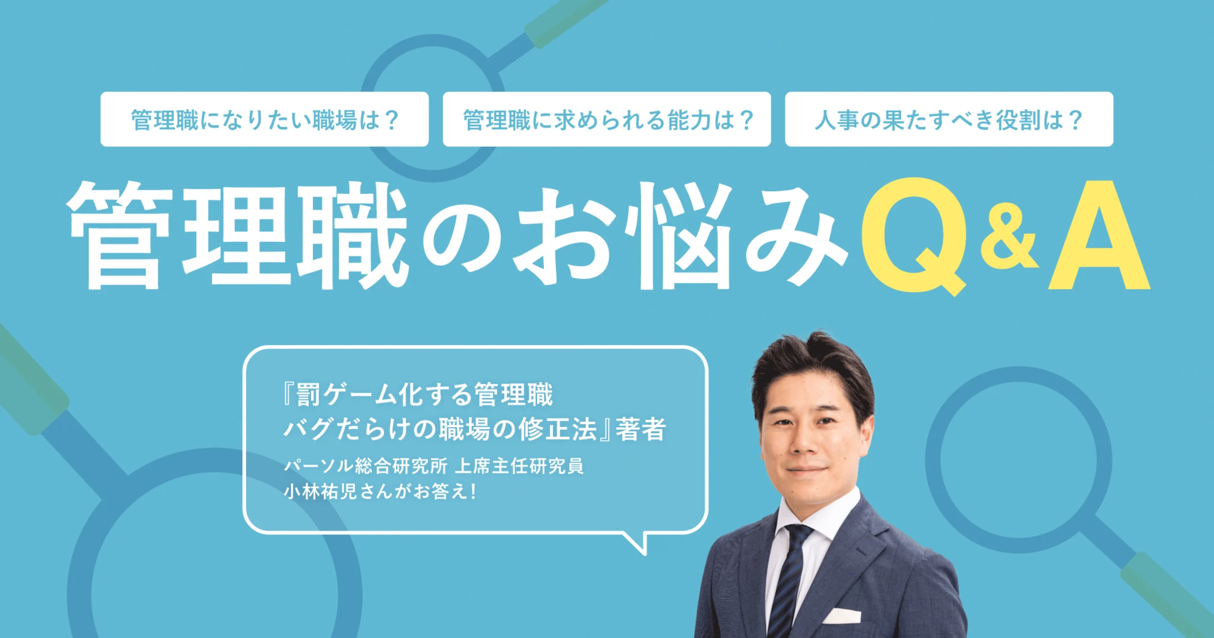 管理職になりたい職場の特徴、求められる能力の変化、ピンクカラージョブにおける課題、そして人事部門の役割まで。『罰ゲーム化する管理職 バグだらけの職場の修正法』の著者でありパーソル総合研究所の上席主任研究員の小林祐児さんにご回答いただきました。