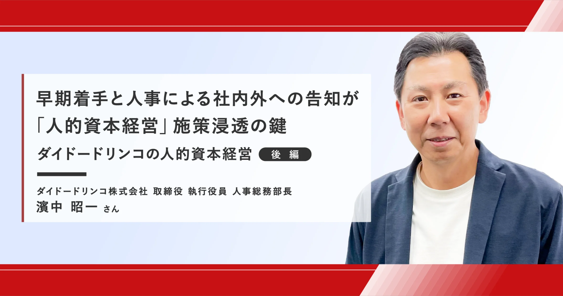 前編では、「具体的な人事施策と実施時のポイント」についてご紹介しました。後編は同社の人材育成と人事施策の浸透策などについて、取締役執行役員 人事総務本部の濱中昭一さんに伺いました。