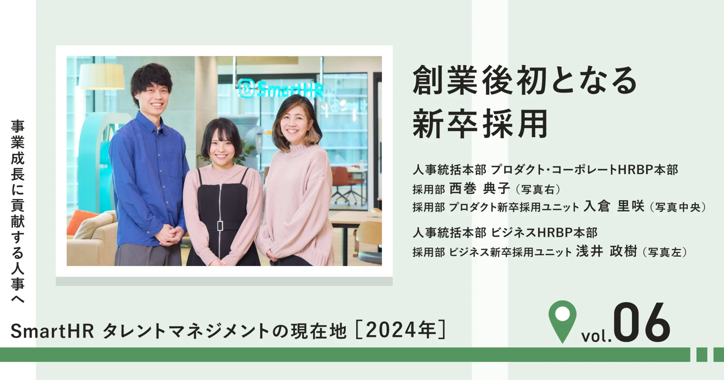 従業員1人ひとりがもつ能力を最大限に発揮するタレントマネジメントをより力強く推進していくため、SmartHRでは創業から10年余が経過した現在、初の「新卒採用」を本格化させています。本記事では、新卒採用の具体的な取り組みや得られた手応えなどついて、採用担当の3人に話を聞きました。