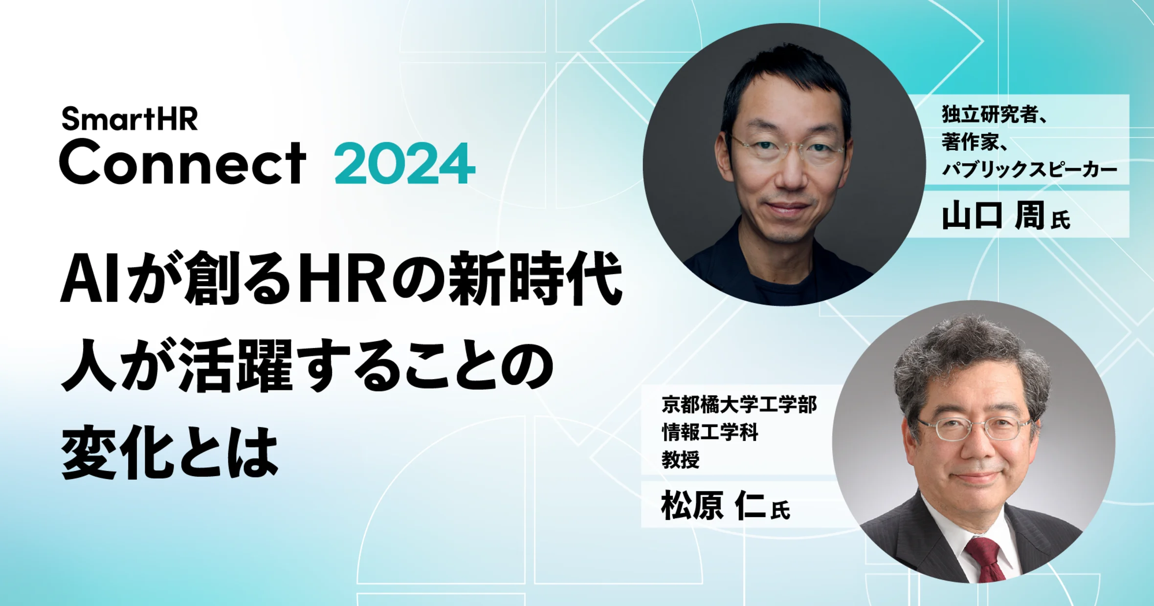 京都橘大学工学部情報工学科 教授の松原仁さんと、独立研究者、著作家、パブリックスピーカーの山口周さんを迎え、「AIが創るHRの新時代 人が活躍することの変化とは」と題した特別セッションが講演されました。