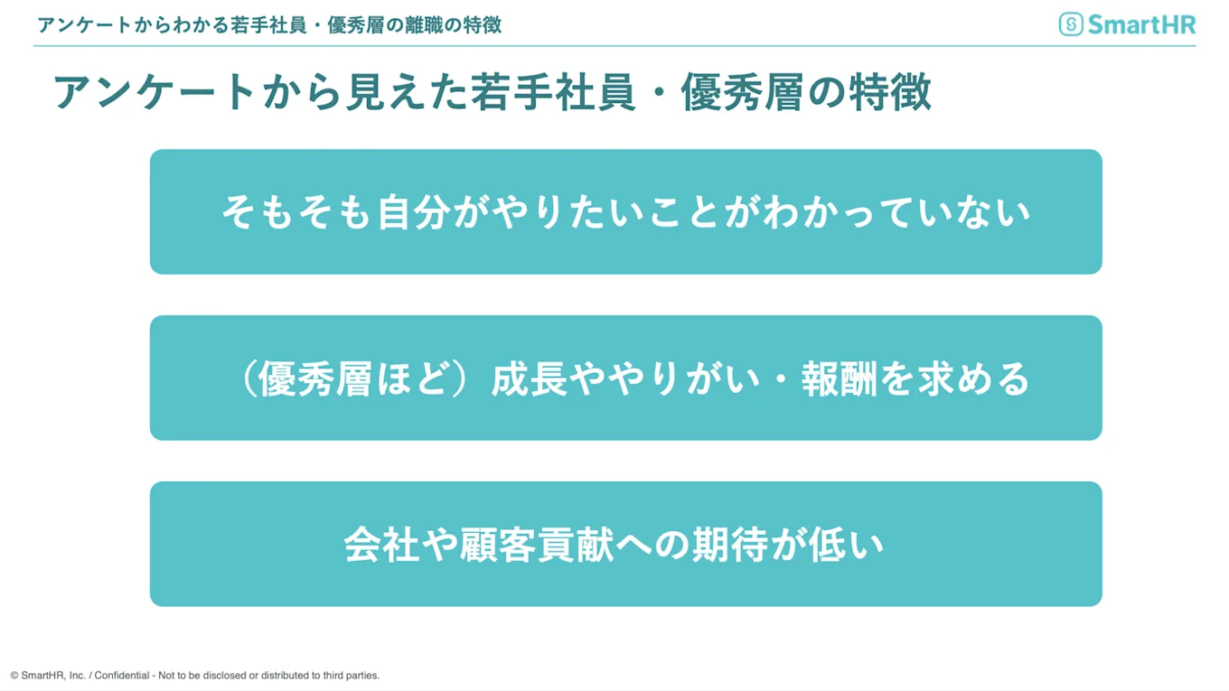 そこで今回は、「若手社員・優秀社員の離職要因」「離職対策」について紐解いていきます。