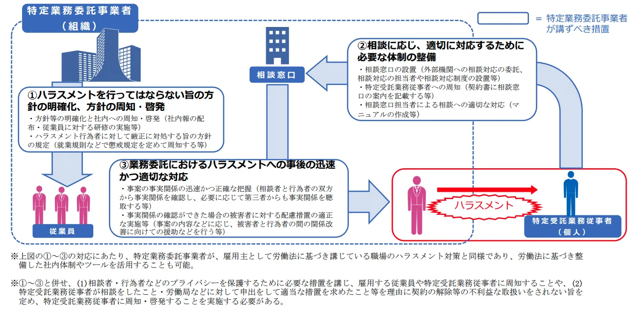 フリーランスに対するハラスメント行為に関し、次の措置を講じること。