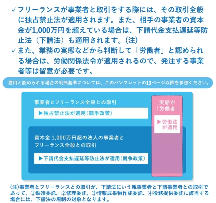フリーランス保護法 | 独占禁止法 | 下請法 | 労働法 | |