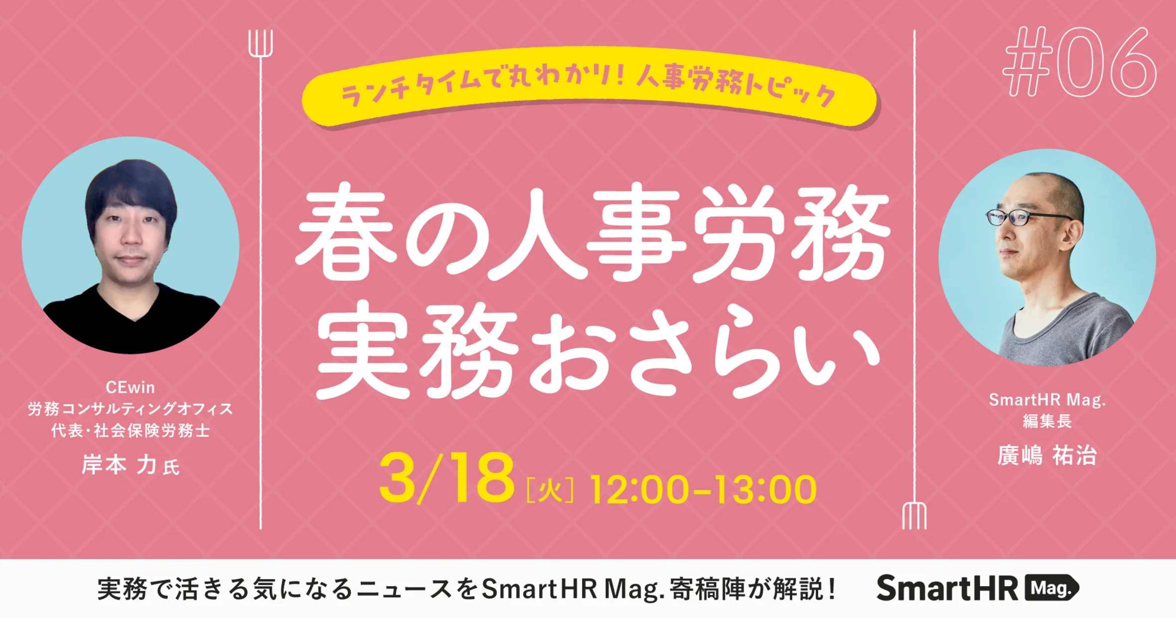 3/18オンライン開催!ランチタイムで知る「春の人事・労務実務おさらい」