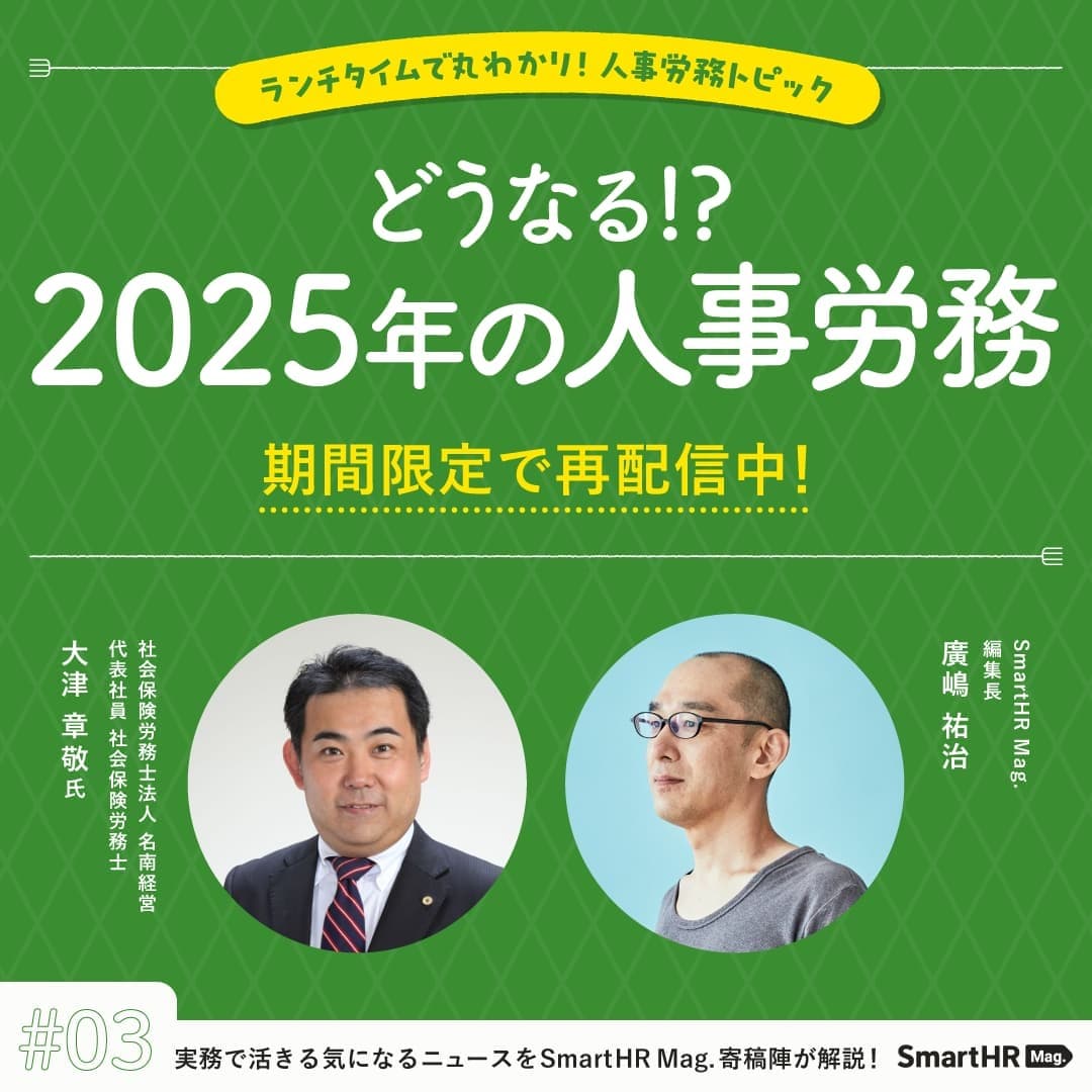 SmartHR Mag.で好評連載中の「人事・労務担当が知っておきたいHRニュース」をもとに、オンラインセミナーを開催しています。