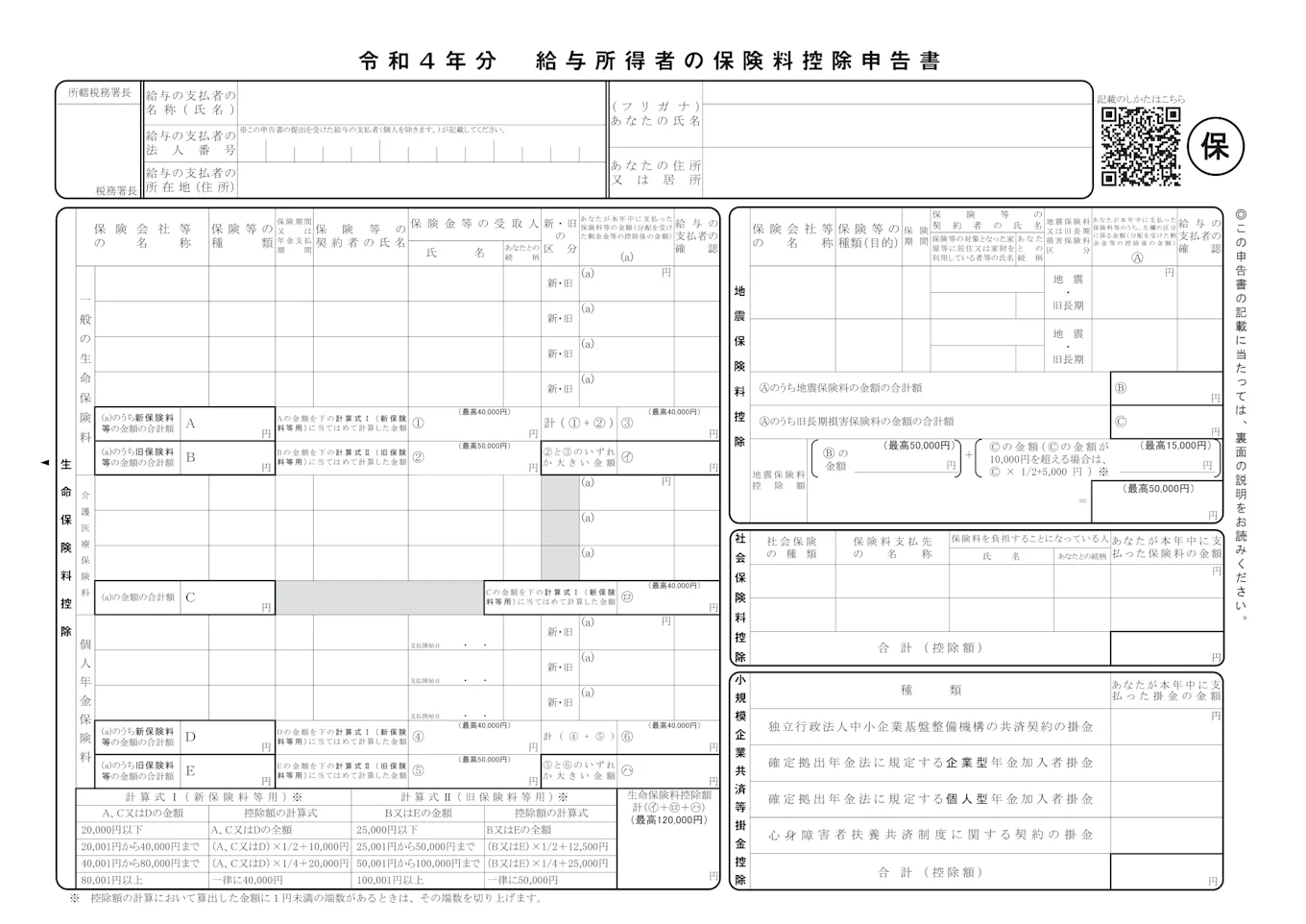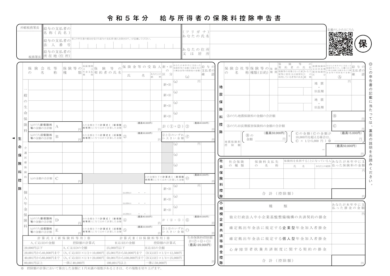 給与所得者の保険料控除申告書
