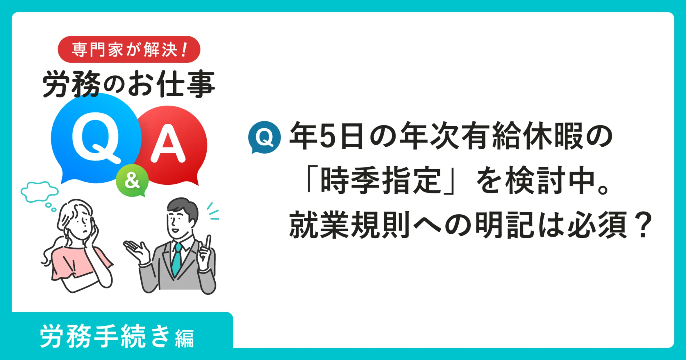 日ごろ、人事・労務業務を担当するなかで「これってどうなの?」という疑問もあるのではないでしょうか。そんな皆さまの疑問に、社労士・税理士・弁護士などの専門家がお答えします。今回は「年5日の年次有給休暇の時季指定」について、社労士が解説します。
