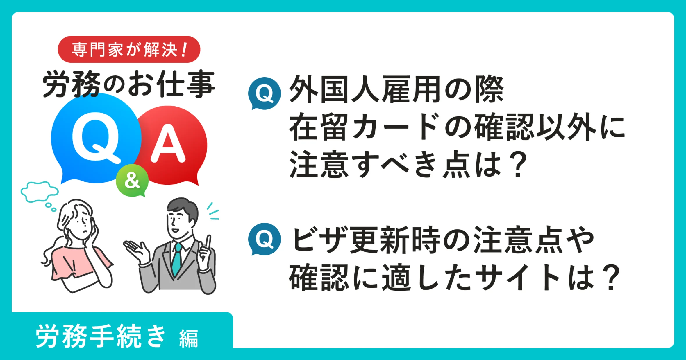 外国人雇用。在留カードの確認以外に気をつけるべきこと、ビザ更新時の注意点は?|労務のお仕事Q&A