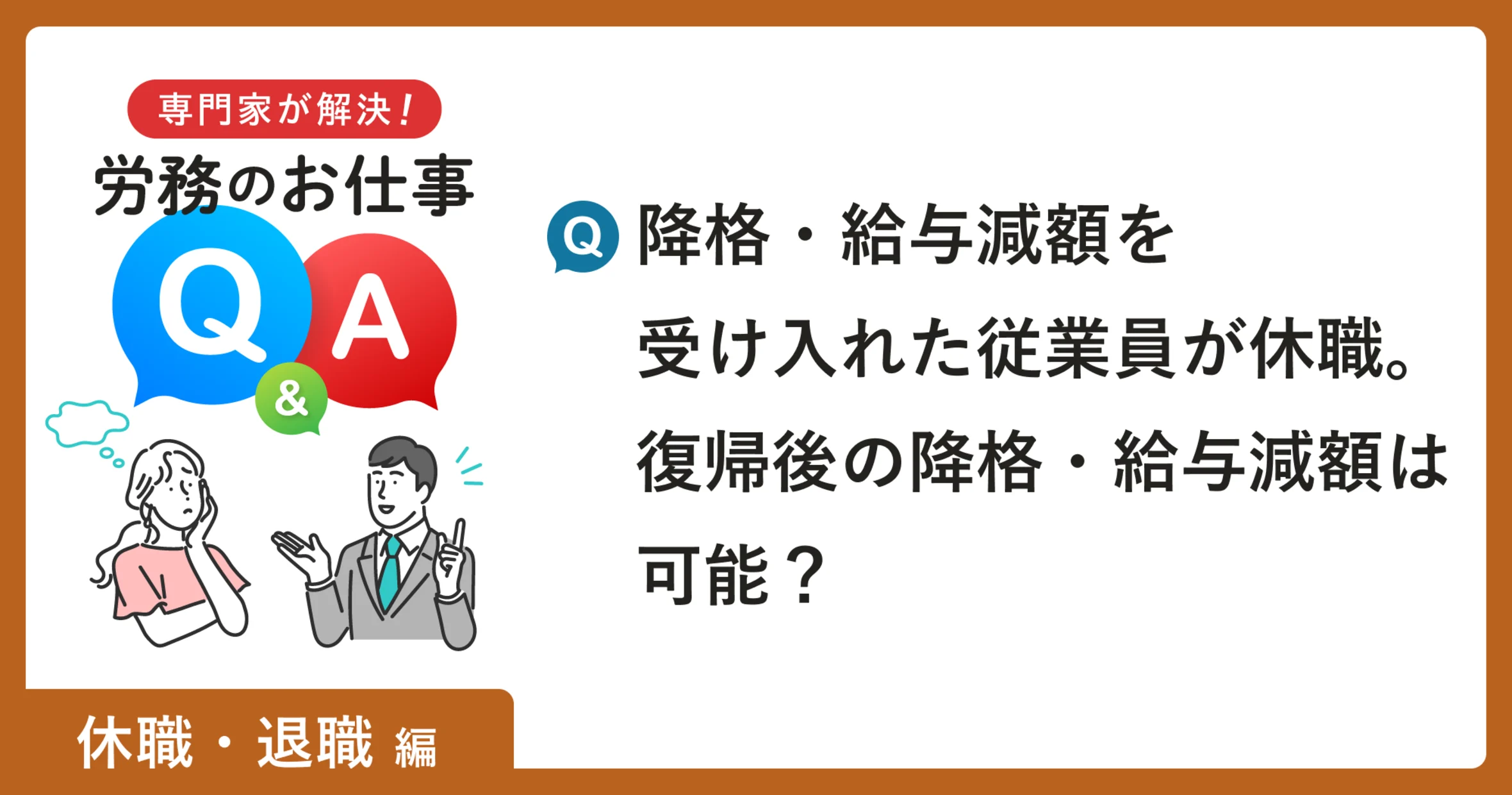 降格・給与減額を受け入れた従業員が休職。復帰後に降格・給与減額は可能?|労務のお仕事Q&A