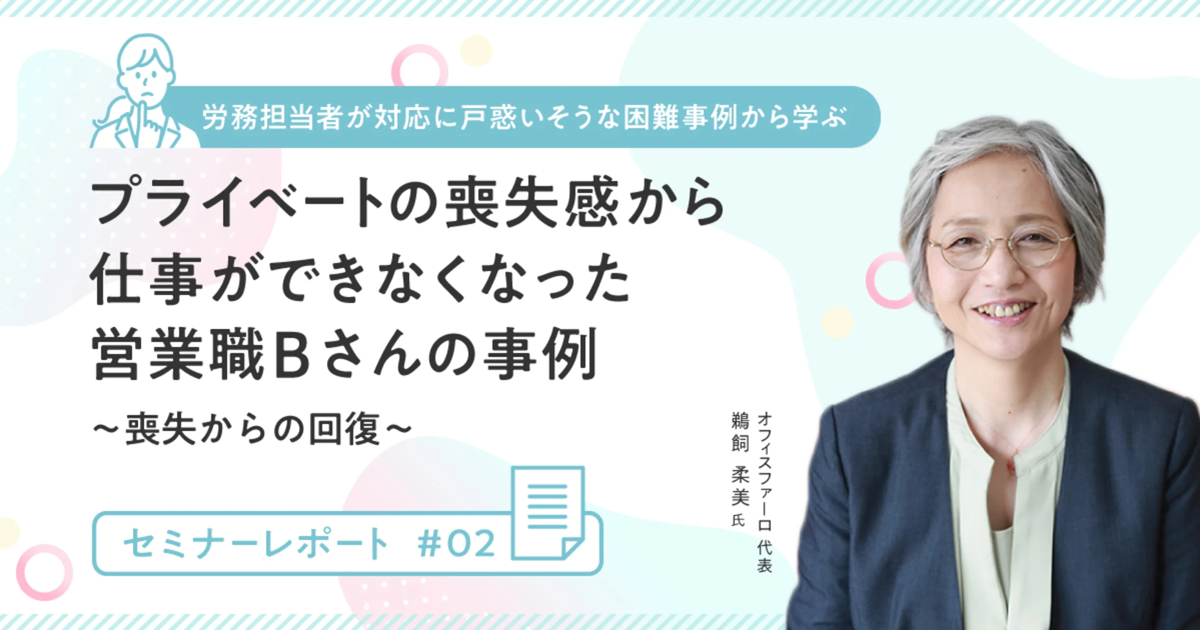 労務担当者が対応に戸惑いそうな困難事例から学ぶ〜プライベートの喪失感から仕事ができなくなった営業職Bさんの事例|喪失からの回復【Smart相談室】Vol.2 セミナーレポート