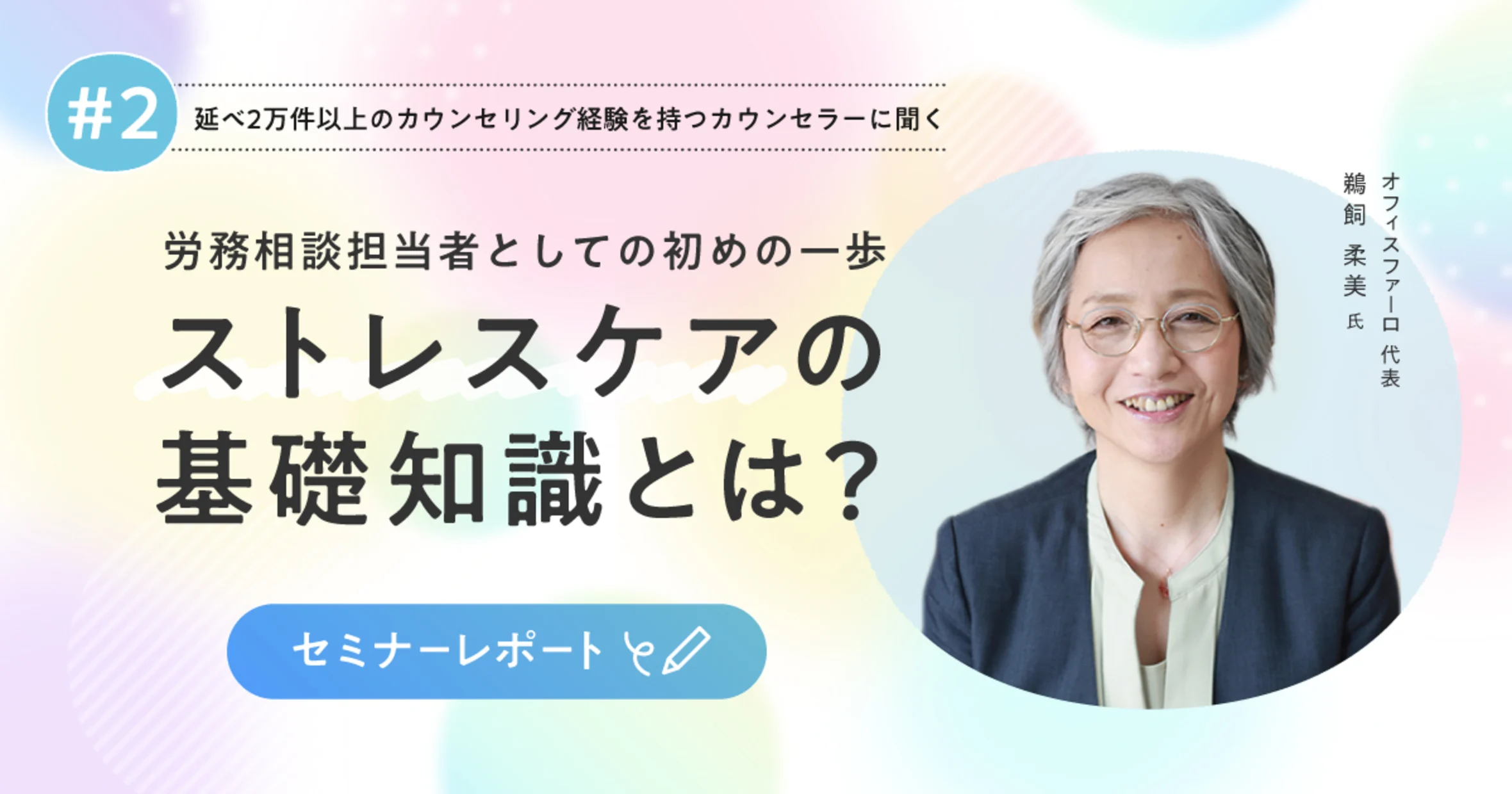 そこで、Smart相談室スーパーバイザーであり、産業カウンセラー資格の養成業務に長く携わりながら、企業でのカウンセリングも担当されている、オフィスファーロ代表、鵜飼 柔美 氏を講師として迎えたセミナーをまとめました。今回は、全7回を予定されているセミナーの第2回目の講演です。