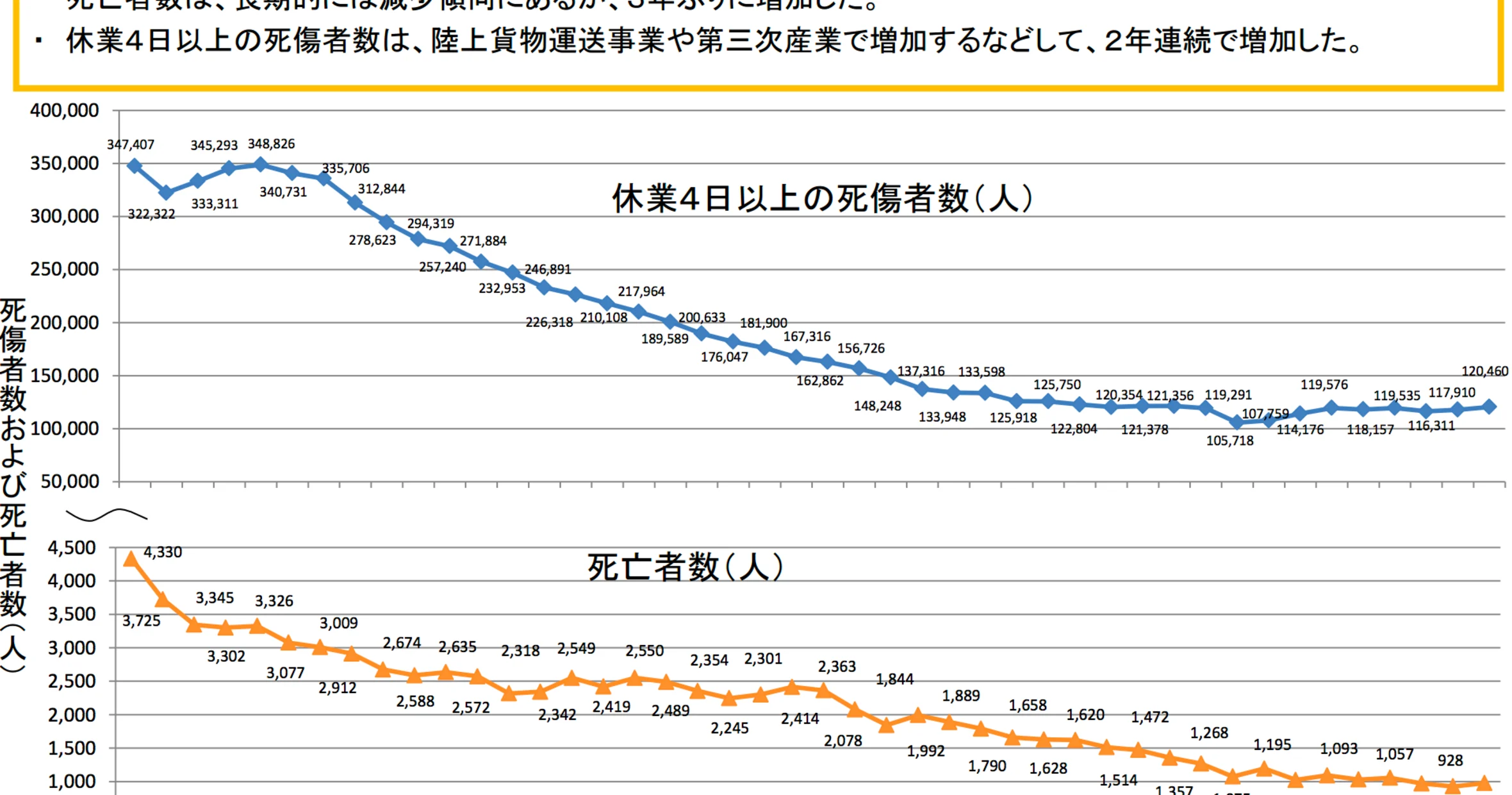 以下は労働災害の発生状況の推移です。