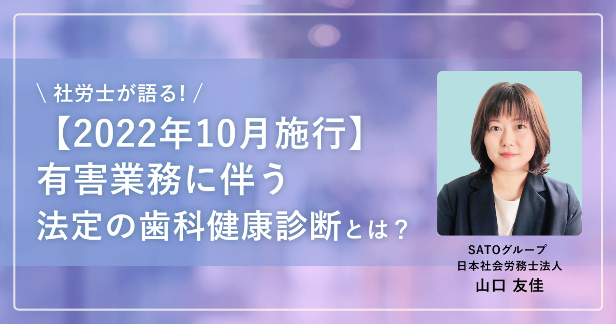 令和4年10月より、歯やその支持組織に有害な業務に労働者を従事させるすべての事業者に対し、歯科医師による歯科検診(歯科健康診断)の報告義務が課せられました。