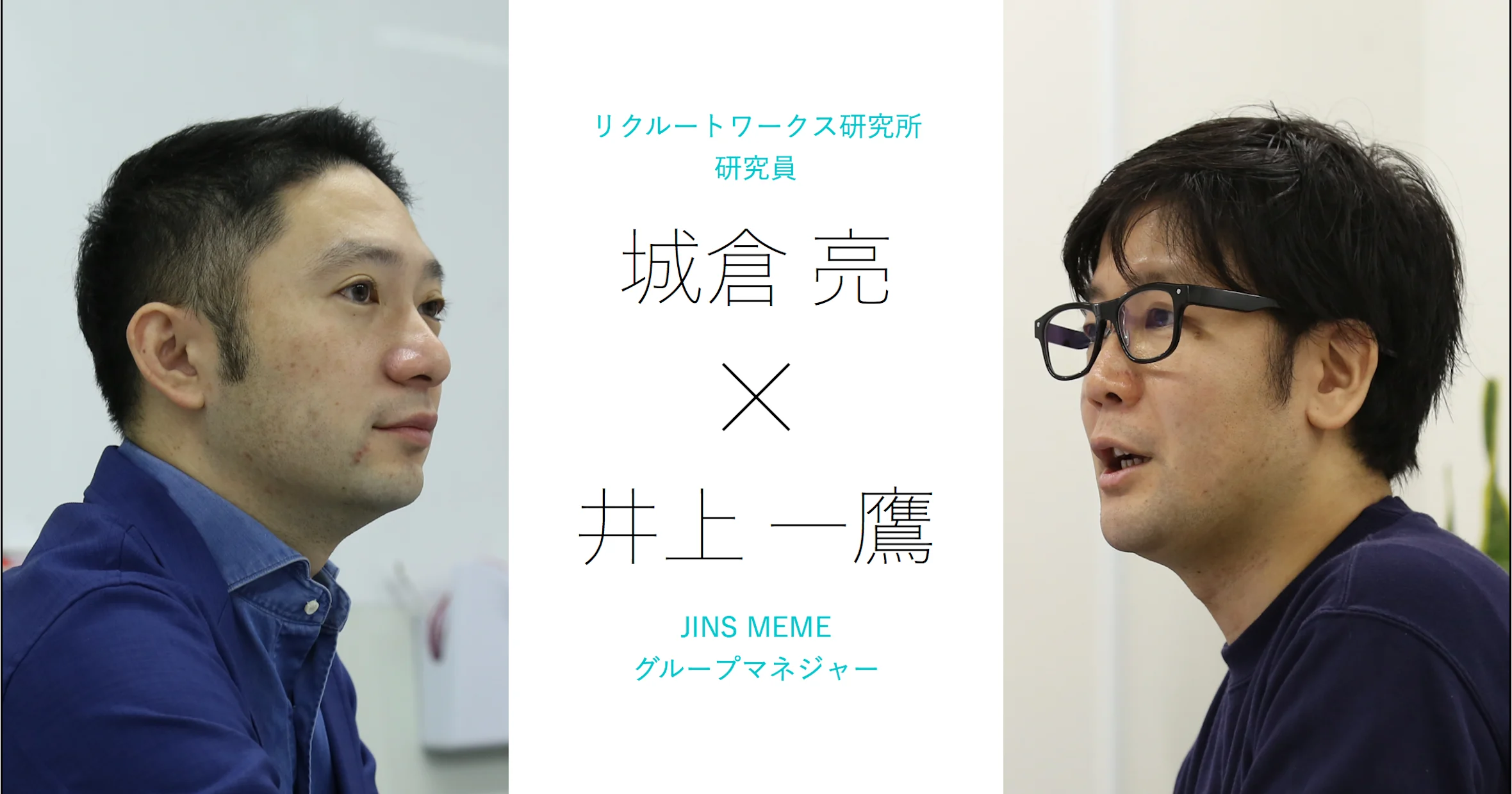 そこで、人々の「働く」をモチベートする、新たな指標や概念が無いかを探るため、JINS MEME グループマネジャー・井上 一鷹氏と、「次世代の新しい働き方」をテーマに研究・提言を行っているリクルートワークス研究所 研究員・城倉 亮氏にお声がけし、対談いただきました。