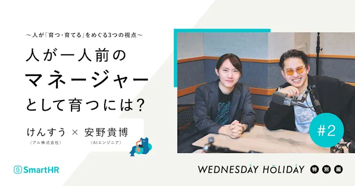 SmartHRが「“働く”を語る水曜日の夜」をコンセプトに配信するポッドキャスト番組『WEDNESDAY HOLIDAY(ウェンズデイ・ホリデイ)』。今回は、100回を記念して配信された「人が『育つ・育てる』をめぐる3つの視点」のレポートをお届けします。
